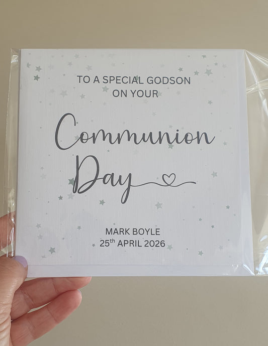 Simple Stars Design - Personalised First Holy Communion Card for Godson or Goddaughter