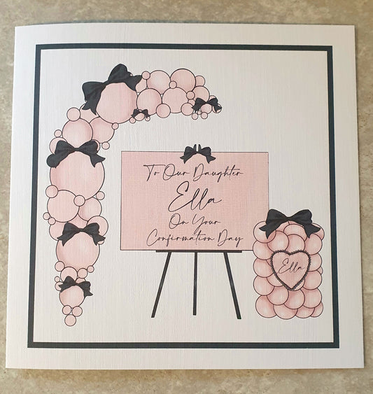 Pink & Black Display - Personalised Communion/Confirmation Card